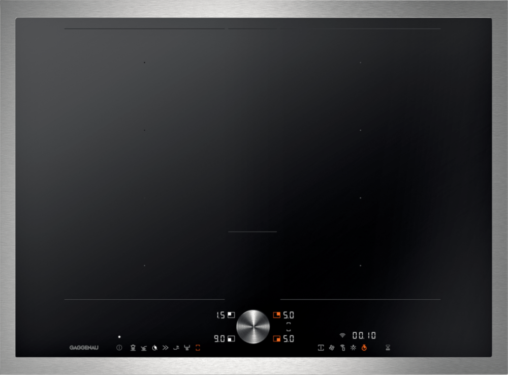 2 комбинируемые индукционные конфорки 19 ×22,5 см (2200 Вт, с функцией Booster 3700 Вт), при совмещении 38 ×22,5 см (3300 Вт, с функцией Booster 3700 Вт), с автоматическим расширением до 30 × 30 см (3300 Вт, с функцией Booster 3700 Вт).