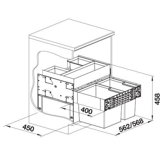 Система сортировки отходов SELECT II 60/2 Orga от Blanco воплощает философию бескомпромиссного качества, инновационного дизайна и функциональности, превращая самое активное место на кухне в продуманный, эргономичный и эстетичный центр для приготовления пищи.