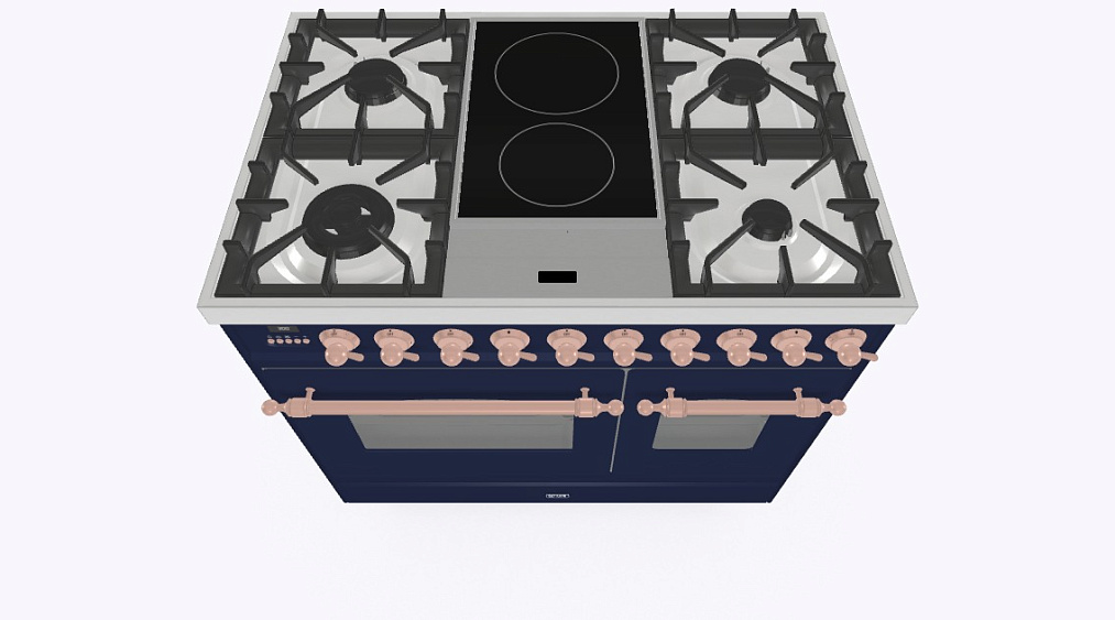 4 газовых, 2 индукционные варочные зоны, двухконторная конфорка DUAL