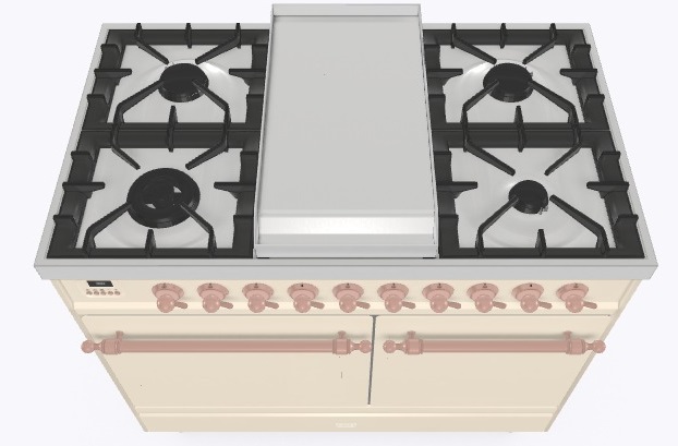 - Тип конфорок: 4 газовые конфорки, WOK конфорка, жарочная поверхность Fry Top