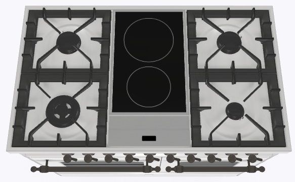 2 индукционные, 4 газовые, 1 Dual конфорка