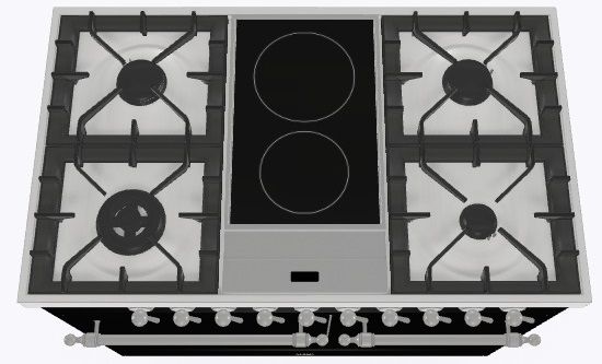2 индукционные, 4 газовые, 1 Dual конфорка