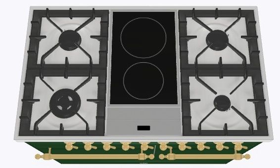 2 индукционные, 4 газовые, 1 Dual конфорка