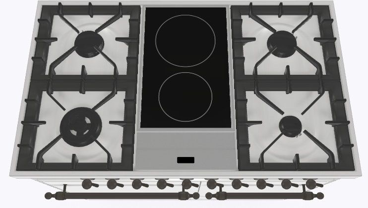 2 индукционные, 4 газовые, 1 Dual конфорка