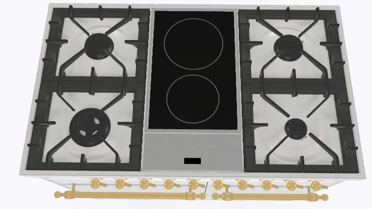 2 индукционные, 4 газовые, 1 Dual конфорка