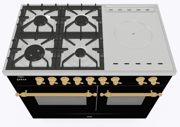 • Тип конфорок: 4 газовые конфорки, WOK конфорка, жарочная поверхность Coup de Feu