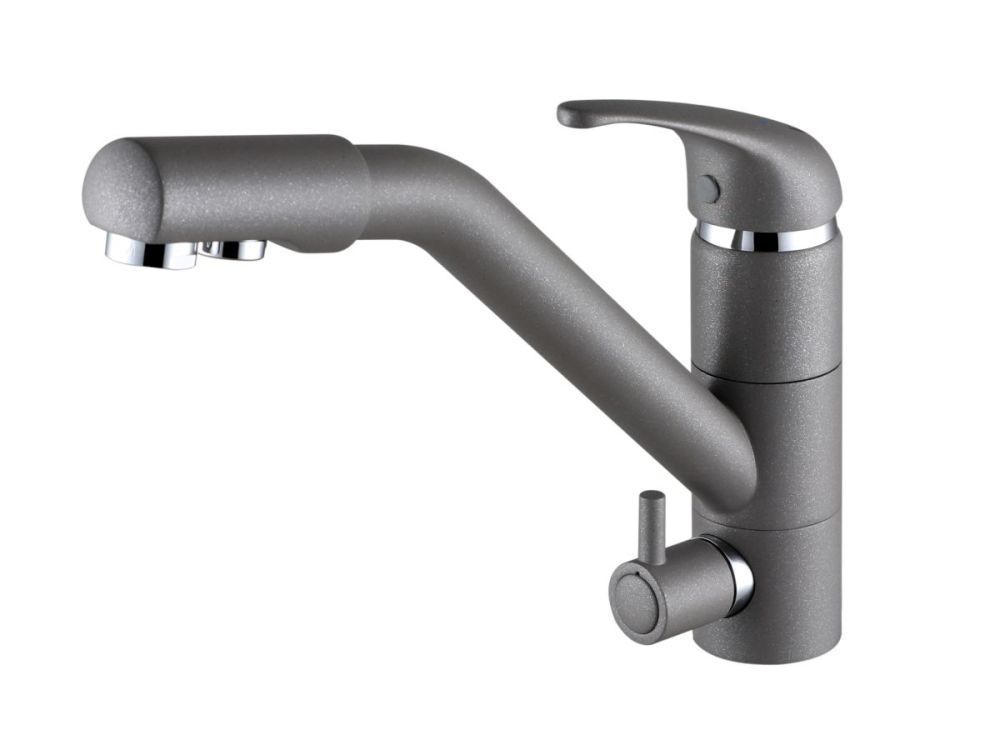 предусматривает поступление фильтрованной воды, которая не смешивается с водопроводной. Питьевая вода подается через отдельные трубку и аэратор, а для регулирования питьевой воды предусмотрена отдельная ручка.
