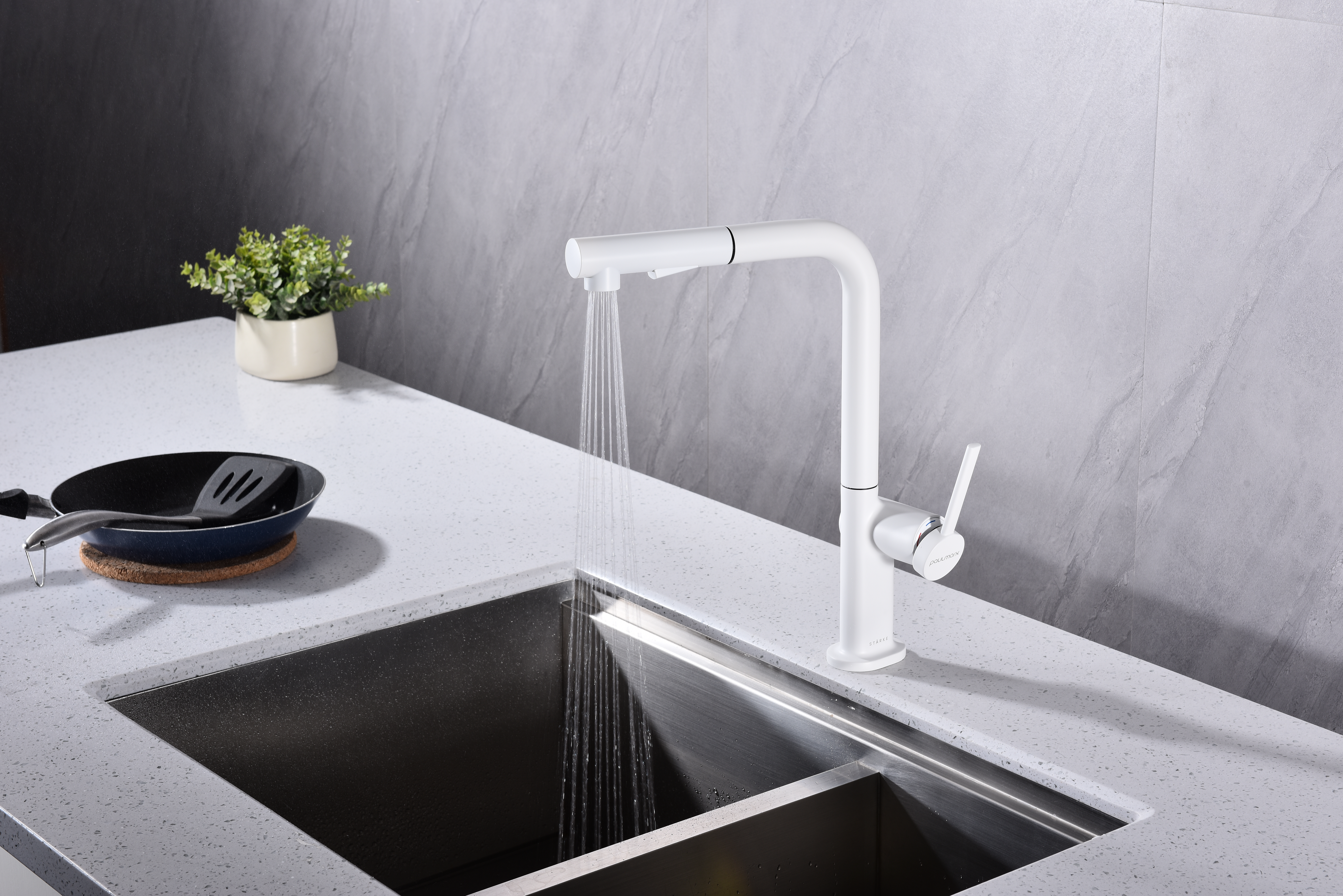 Гарантия на смесители Paulmark 5 лет. Гибкая подводка и все необходимые крепежи для монтажа предусмотрены в комплекте.